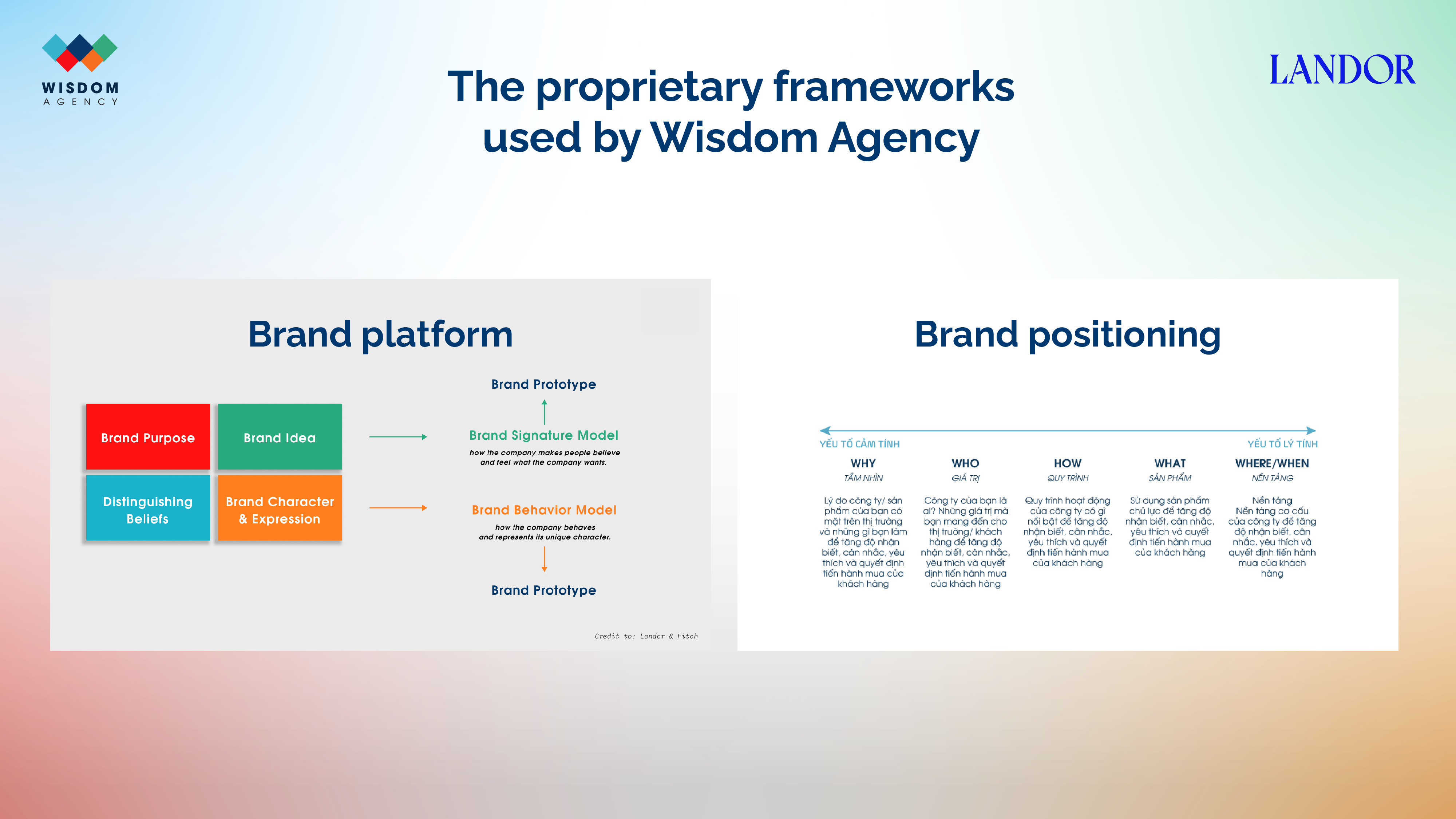 Để làm được điều đó, Wisdom Agency chọn đi từ gốc rễ: sử dụng những phương pháp luận hệ thống, logic được kế thừa và chắt lọc từ các học viện và agency quốc tế. Nhờ nền tảng vững chắc này, mọi hoạt động truyền thông đều được phát triển một cách thống nhất, tạo ra sức cộng hưởng mạnh mẽ. Gíup thương hiệu tỏa sáng trong đúng phân khúc của mình và tạo điều kiện để khách hàng ghi nhớ lâu dài với phong cách cùng tinh thần độc bản.